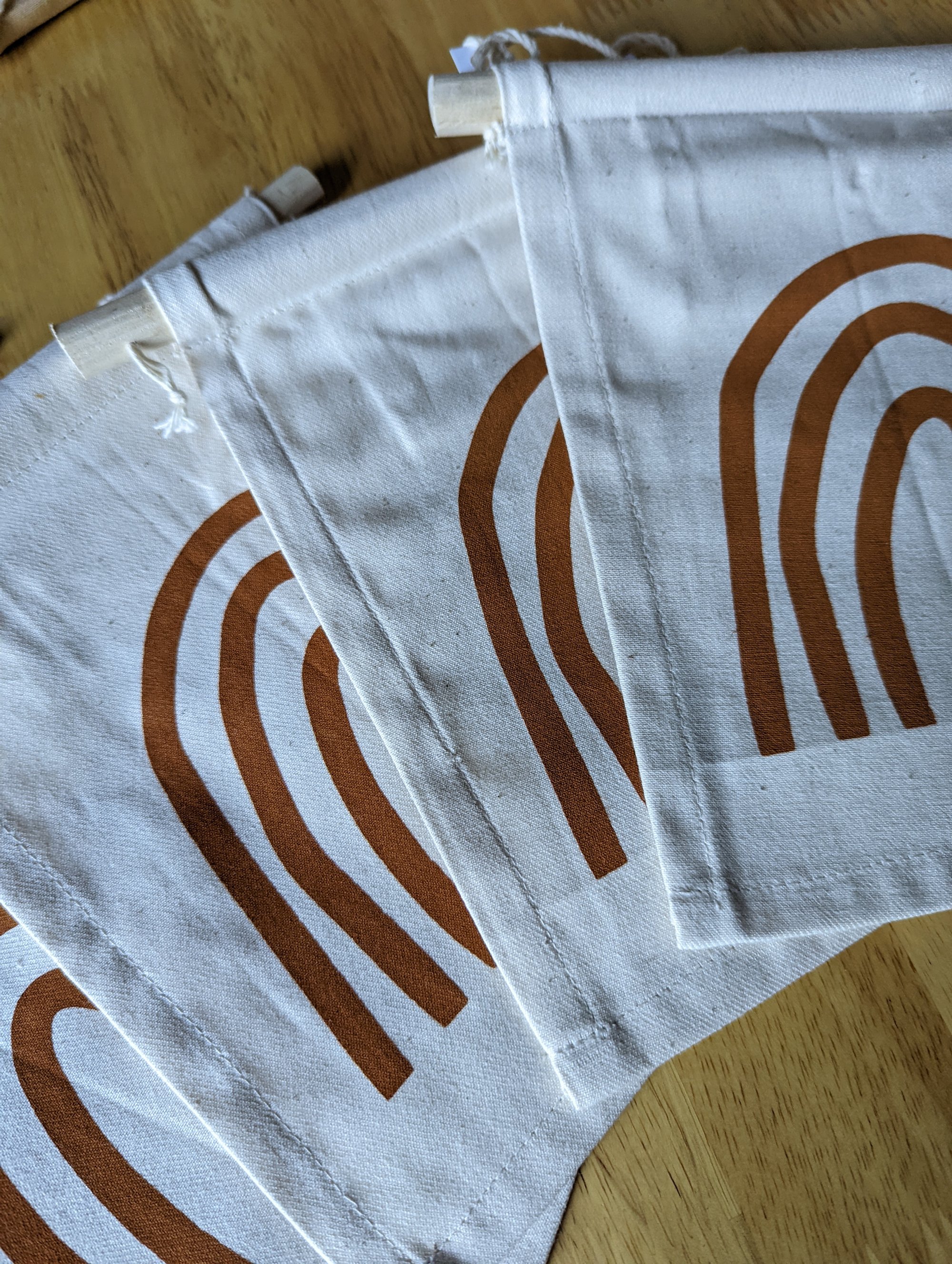 Bang on trend hanging fabric retro bohemian style rainbow nursery flag .